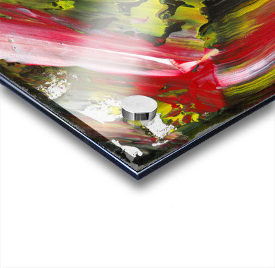 Imprimé jusqu’au bord et prêt à être accroché, avec 4 cylindres (entretoises) en aluminium ( les vis murales sont incluses )