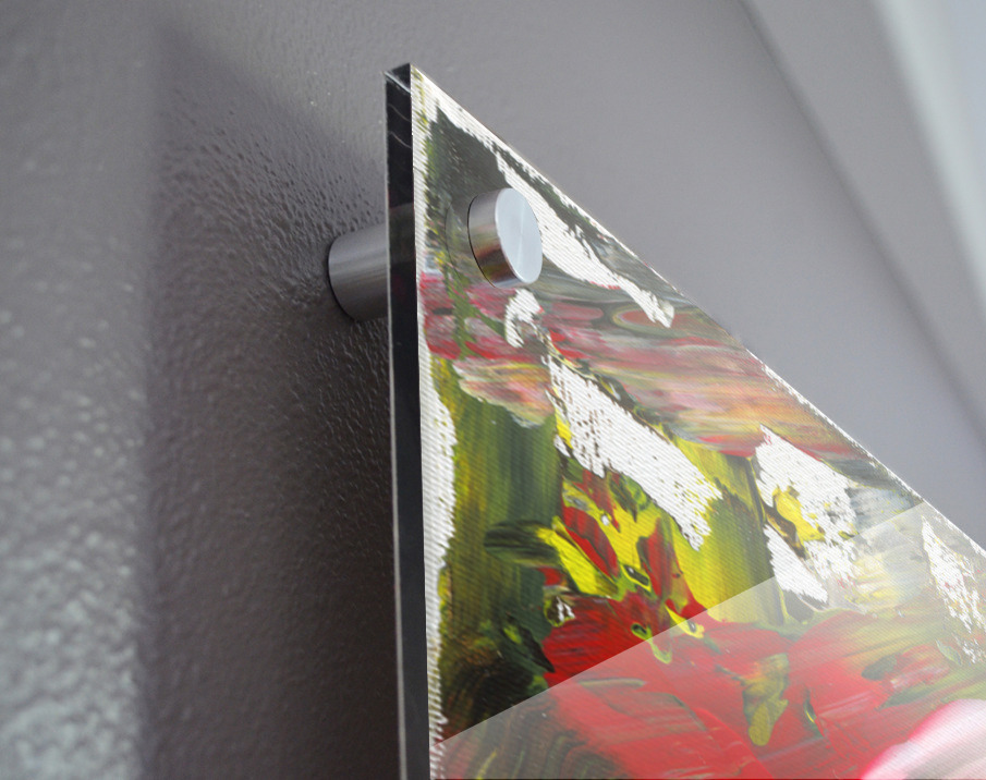 Impression sur acrylique avec entretoises ( cylindres métalliques )